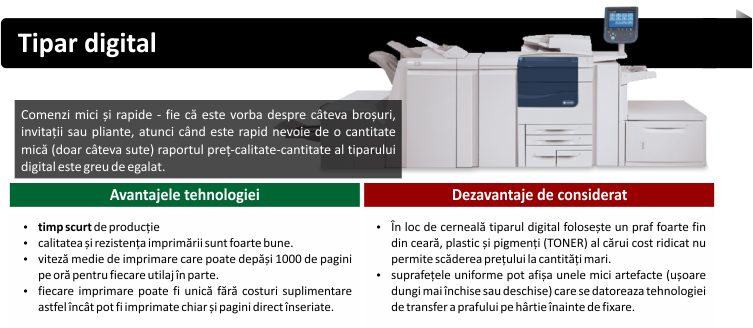 Vă punem la dispoziție gama completă de servicii tipografice și print indiferent de material sau tiraj. Cu un excelent timp de răspuns, comenzile vor fi realizate în cel mai scurt timp posibil.